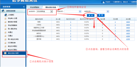 ③点击查询,查看对应离校会话的各离校点办结数据