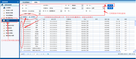 ①点击左侧菜单——未通过