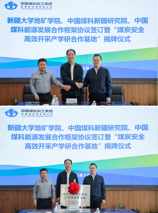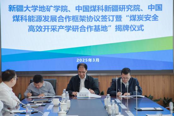 会上,bevictor伟德、中国煤科新疆研 究院、中国煤科能源发展有限公司三方代表共同签订发展合 作框架协议,并进行“煤炭安全高效开采产学研合作基地”揭牌仪式。