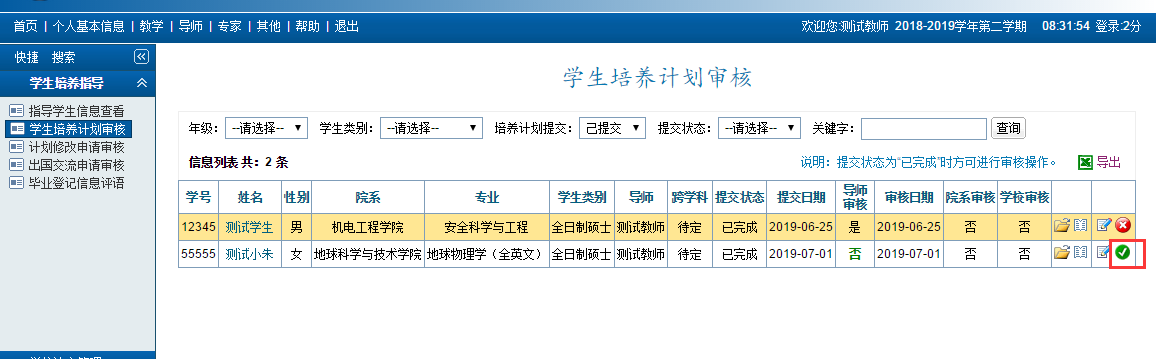 功能菜单:导师 → 员工培养指导 →员工培养计划审核